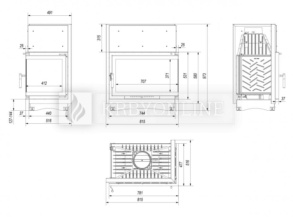 Kratki Oliwia P BS teplovzdušná krbová vložka pravé bočné presklenie