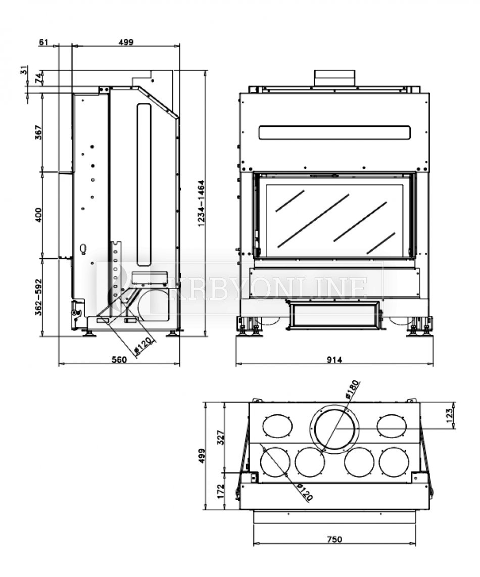 - ohnisko je vyložené vysokokvalitnými vermikulitovými žltými doskami