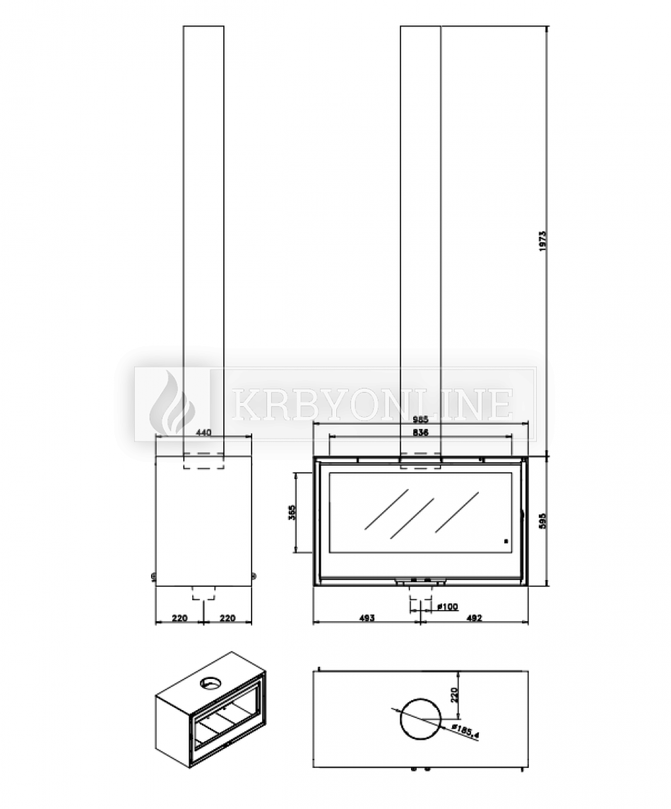 ⇒ Dodatočný dymovod - výška je voliteľná (490 mm/990 mm/1980 mm), priemer je 150 mm. (1. obrázok)