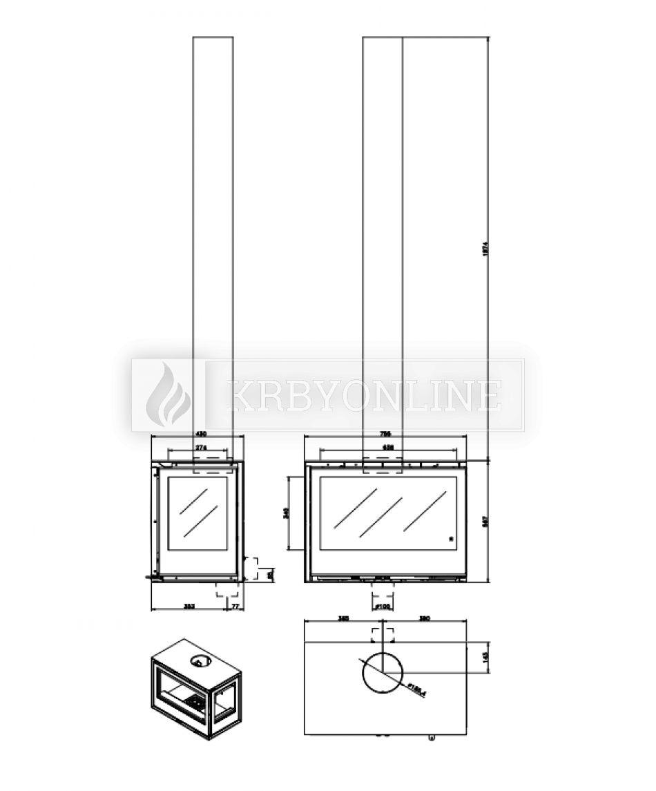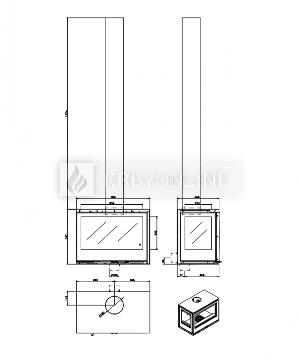 ⇒ Dodatočný dymovod - výška je voliteľná (490 mm/990 mm/1980 mm), priemer je 150 mm. (1. obrázok)